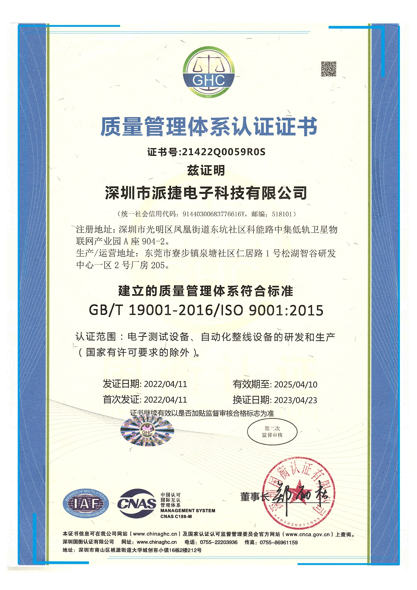 在“质量线就是生命线”的质量方针引导下,派捷为众多电子制造商的产品优化、品质保障,做一名不可或缺的助推手和把关者,每一个测试环节都经过精心规划与执行,为提升企业科学的自动化制程建立专业的监控安全网,保障更高的“精品率”。